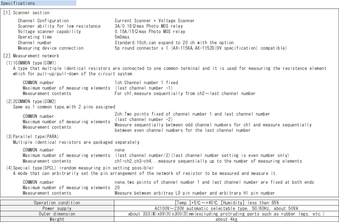 Máy quét này dành cho máy đo điện trở thấp như AX-1156A hoặc AX-1152D (thông số kỹ thuật 9V).