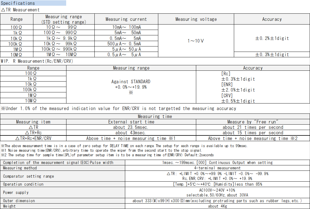 Đo biên độ hẹp (△TR) cho tất cả các giá trị điện trở của biến trở ● Chức năng kiểm tra liên lạc tích hợp |