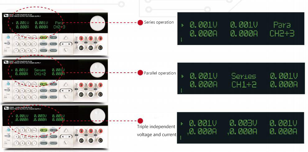 Support serial or parallel connection | Limited voltage, limited current and OTP | Optional USB, GPIB/IEEE488, RS232 |