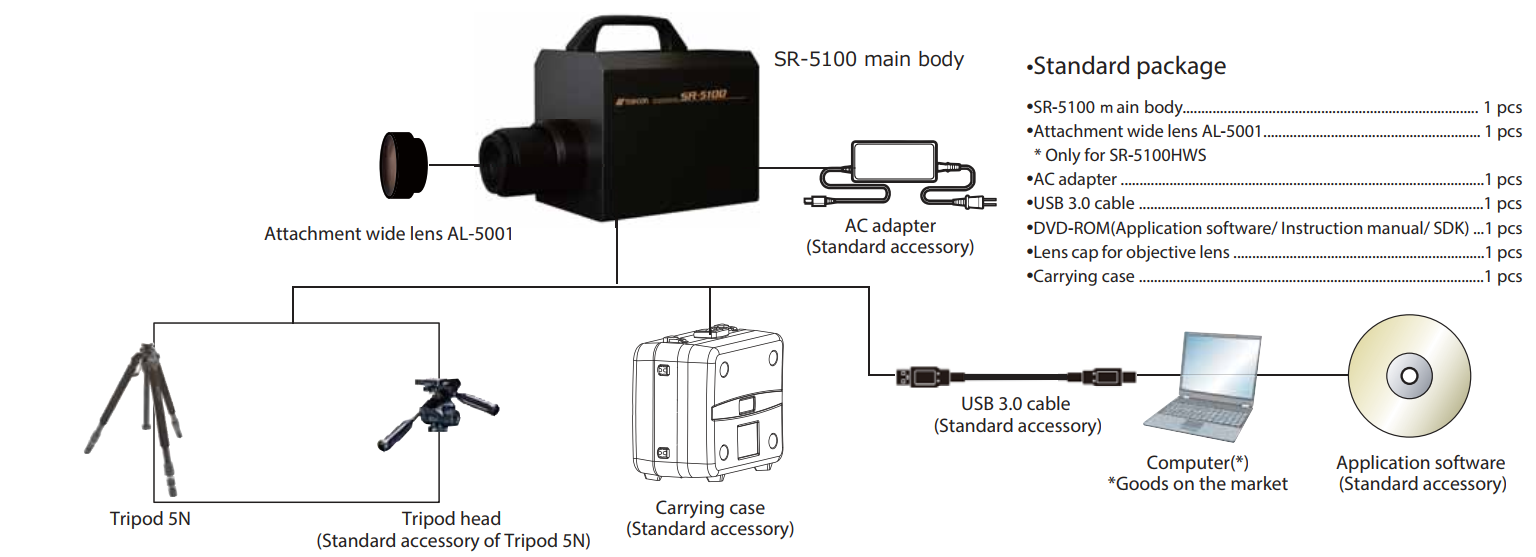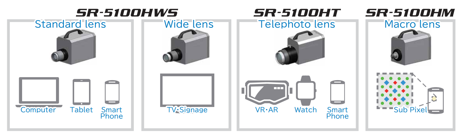 SR-5100 Series của Topcon Technohouse gồm 3 phiên bản SR-5100HWS, SR-5100HT, SR-5100HM là Máy quang phổ 2D (2D Spectroradiometer), đánh giá các đặc tính quang phổ của nguồn sáng hoặc vật thể theo đơn vị 5 triệu pixel, 17 tỷ cd/m2 và 1 nm, chẳng hạn như như đặc tính bước sóng của nguồn sáng, đặc tính truyền quang phổ của vật liệu.